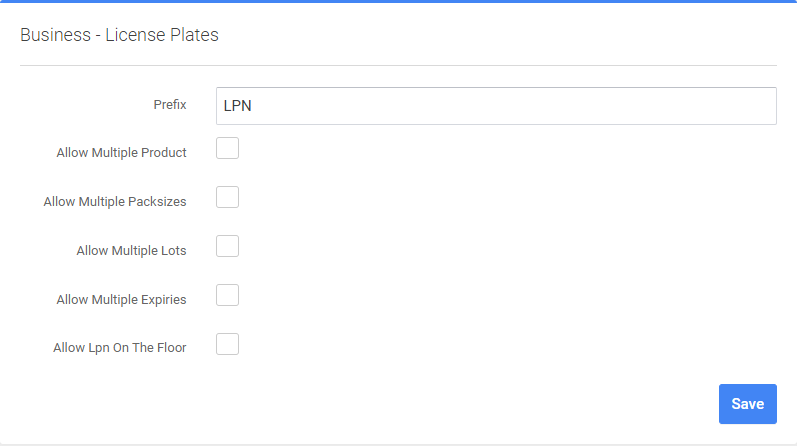 * **Allow Multiple Lots** - whether License Plates allow multiple Lots.