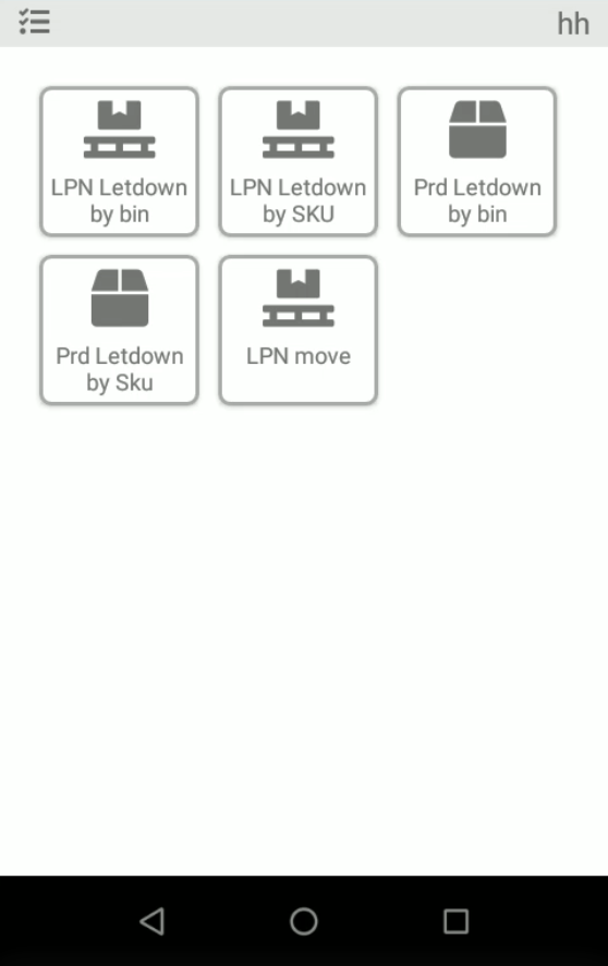 Bulk folder contains five options, including: LPN Letdown by bin, LPN Letdown by SKU, Product Letdown by bin, Product Letdown by SKU, and LPN move.